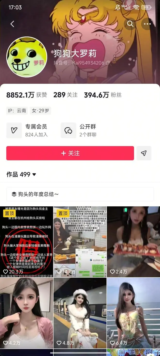 第三方数据显示,狗狗大罗莉视频平台粉丝数为394.6万,过去30日掉粉超1.6万。此外,其1-20s视频广告报价为2.5万元,21-60s视频广告报价为2.8万元,60s以上视频广告报价为3万元。